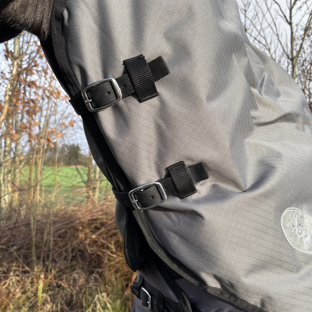Dieser Hals kann am AB Winterdecke Check 300g und 1130 AB Übergangsdecke angebracht und unter dem Hals mit 2 verstellbaren Schnallen geschlossen werden.