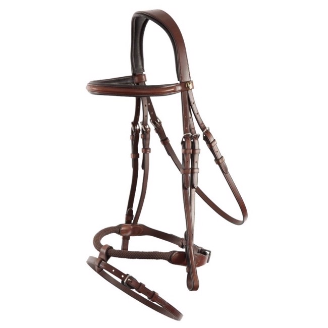 Schöne symmetrische Trense mit anatomisch geformtem Genickstück mit weicher Polsterung. Gepolsterte Stirnbänder, die gerade und flach sind. Die Vorderseite des Nasenbandes besteht aus Nylonseil für eine schärfere Korrektur, wenn das Pferd das Maul öffnet. Die Trense hat runde, glänzende, silberfarbene Beschläge. Wird ohne Zügel geliefert. Erhältlich in den Farben: Black/silver - Oak/silver Erhältlich in der Größe: Cob - Full