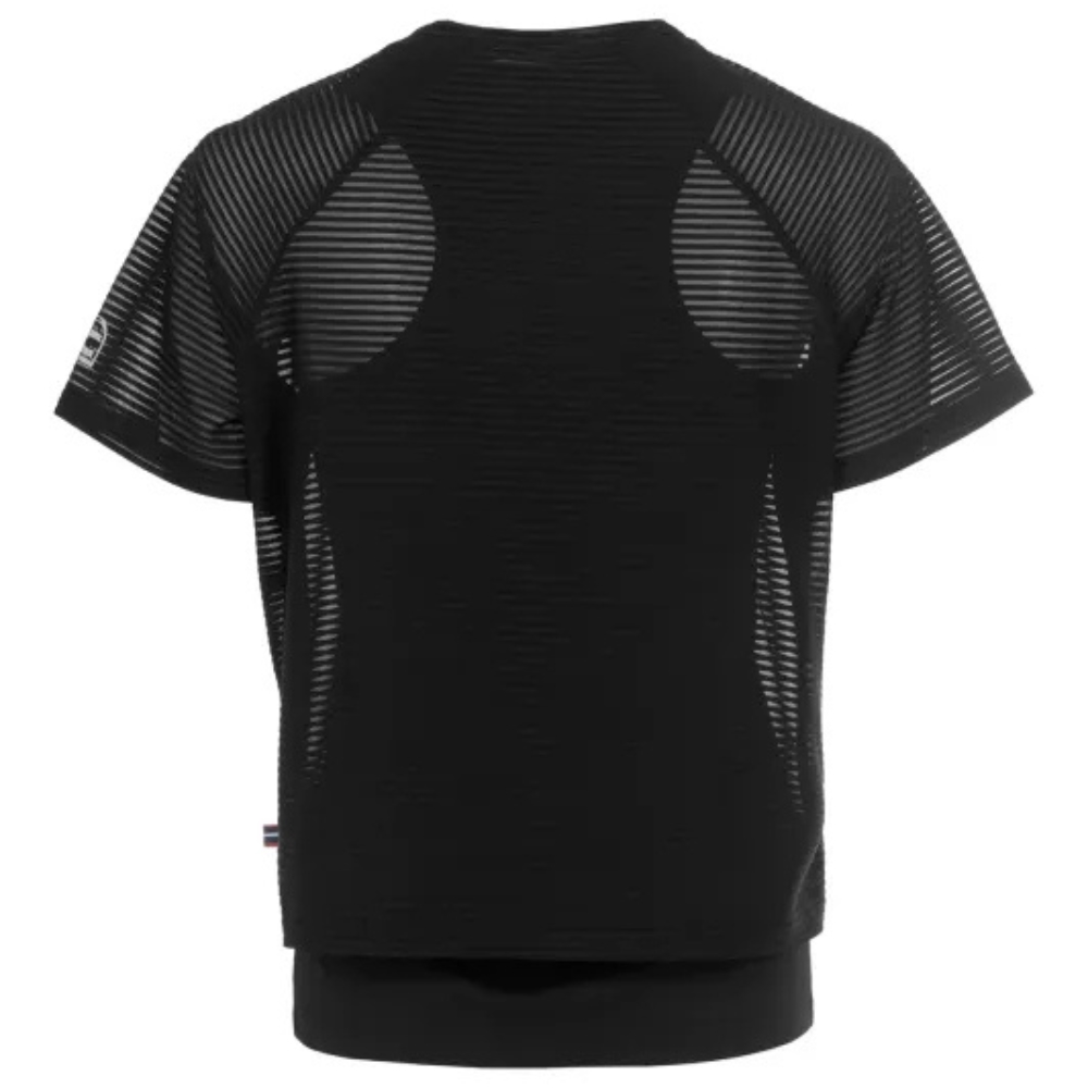 Cavallo Double Layer T-shirt ist ein sportliches und modernes Trainingsshirt mit einem stilvollen Layering-Design. Das kurze T-Shirt mit kurzen Raglanärmeln hat einen leicht transparenten, gestreiften Look, der für eine elegante und funktionale Optik sorgt.