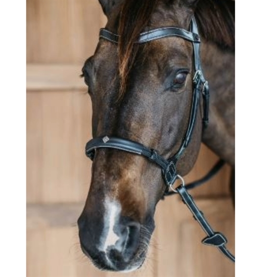 Die Trense ist mit einem innovativen Nasenriemendesign ausgestattet, das eine präzise Kommunikation zwischen Pferd und Reiter ermöglicht.