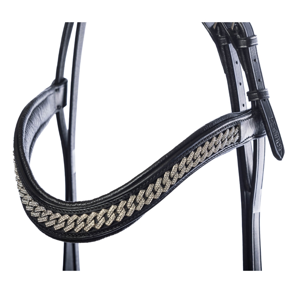 • Exklusive „Crystal Curb“ Verzierung: Sowohl Stirn- als auch Nasenriemen sind mit dem charakteristischen Crystal Curb geschmückt, einer eleganten Kette mit feinen Kristallen, die der Trense einen luxuriösen und schmuckartigen Ausdruck verleiht.