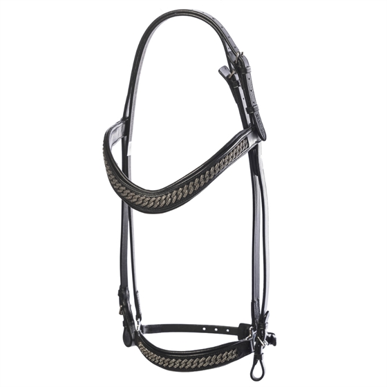 Diese elegante Trense kombiniert klassisches Design mit einem luxuriösen Touch und ist damit die perfekte Wahl für Turniere, Wettbewerbe und das tägliche Training. Handgefertigt aus weichem, geschmeidigem Qualitätsleder, bietet die Trense ein hannoveranisches Reithalfter und exklusive Details mit Crystal Curb-Verzierungen, die einen schmuckartigen Akzent setzen.