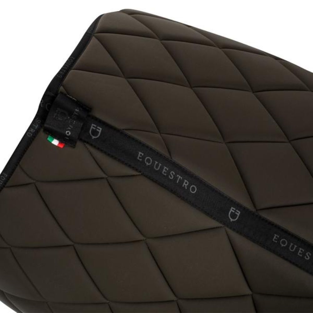 Dieses elegante Equestro-Set mit Spring-Schabracke und passendem Hut ist aus einem gepolsterten technischen Stoff gefertigt, der effektiv die Bewegung des Sattels minimiert und Stöße absorbiert. Es trägt zu einem erhöhten Komfort für das Pferd bei und reduziert das Risiko von Hautabschürfungen beim Reiten.