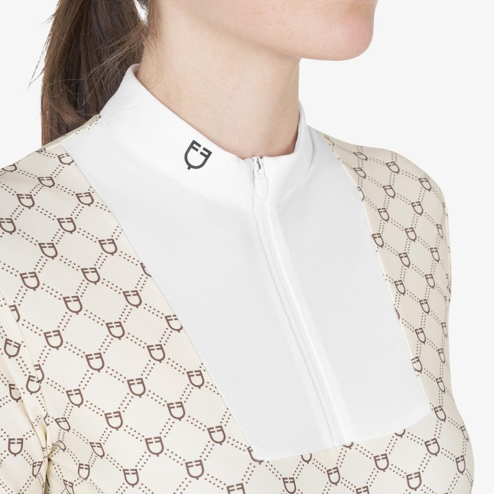 Dieses langärmelige Equestro Wettkampf-Polo ist aus einem flexiblen technischen Material mit einem raffinierten Monogramm-Print gestaltet, das einen modernen und exklusiven Ausdruck verleiht – ganz im Einklang mit Equestros innovativer und stilreiner Designlinie.