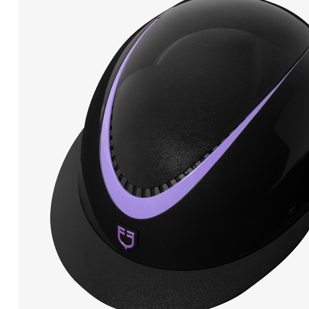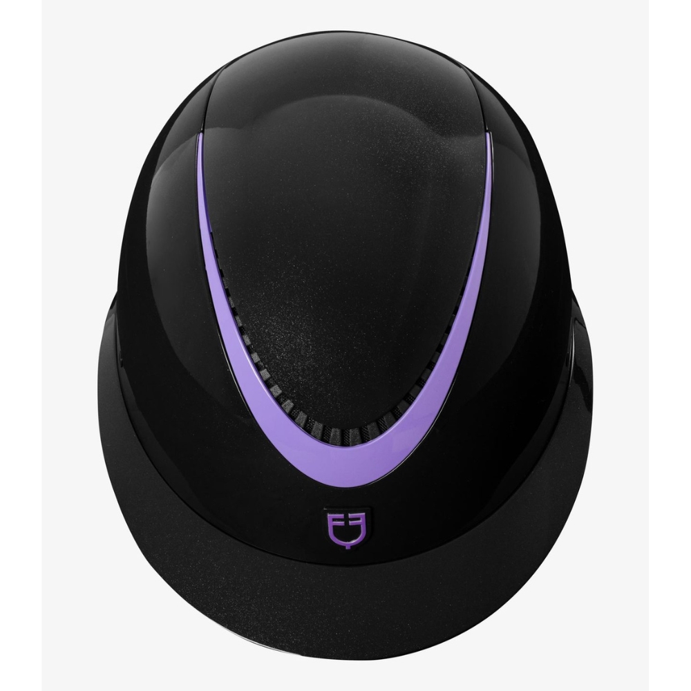 • Elegantes Design: Der Belüftungsbereich ist mit einem schönen farbigen Rahmen verziert, der dem Helm ein exklusives und raffiniertes Aussehen verleiht – typisch für Equestro-Produkte.