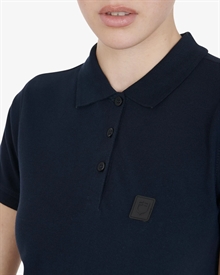 Das Poloshirt hat einen femininen Slim Fit, der eine schöne und gut sitzende Silhouette bietet, ohne die Bewegung einzuschränken. Rippbündchen an Ärmeln und Kragen sowie ein klassischer Drei-Knopf-Verschluss vervollständigen den sportlichen, zeitlosen Look.