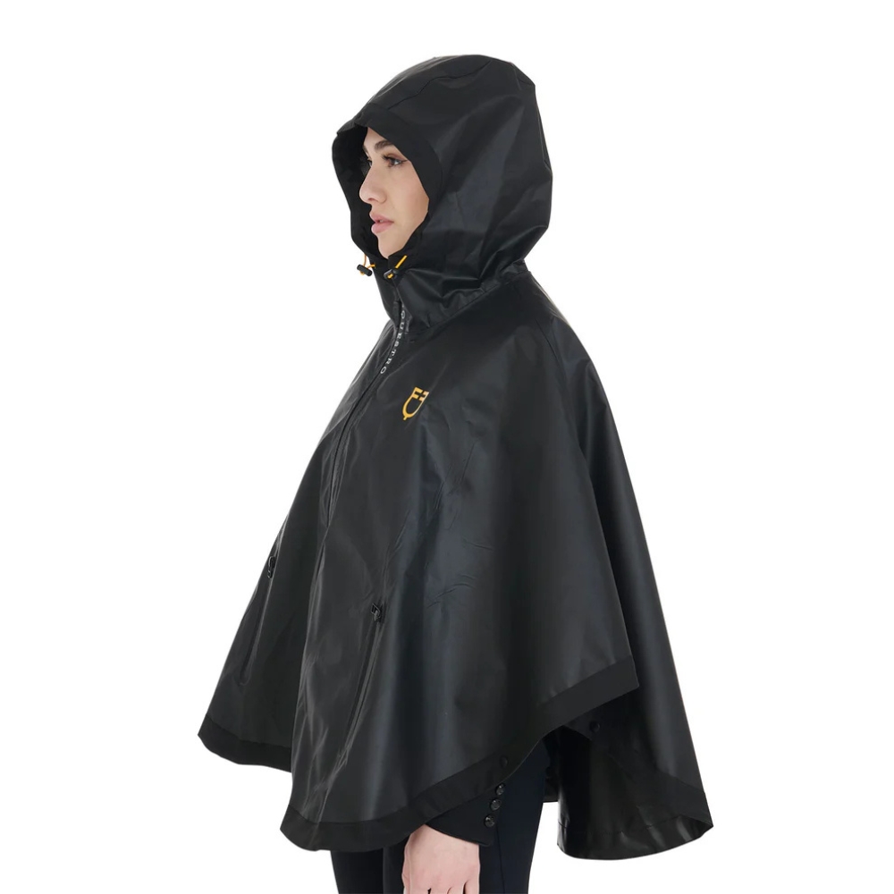 Alle Nähte und Reißverschlüsse sind heißversiegelt, um vollständige Wasserdichtigkeit zu garantieren, während der feminine Schnitt einen schönen und modernen Look verleiht. Der Regenmantel hat ein gedrucktes Equestro-Logo auf der linken Brust sowie Logo-Details entlang des Reißverschlusses, die das exklusive Design abrunden.