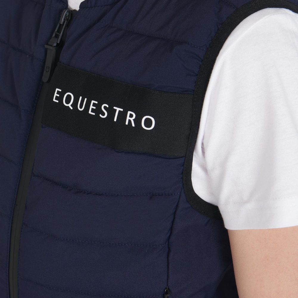 Die Weste hat einen windgeschützten Reißverschluss, zwei praktische Seitentaschen mit Reißverschluss und ein schönes Equestro-Logo auf der linken Brust.