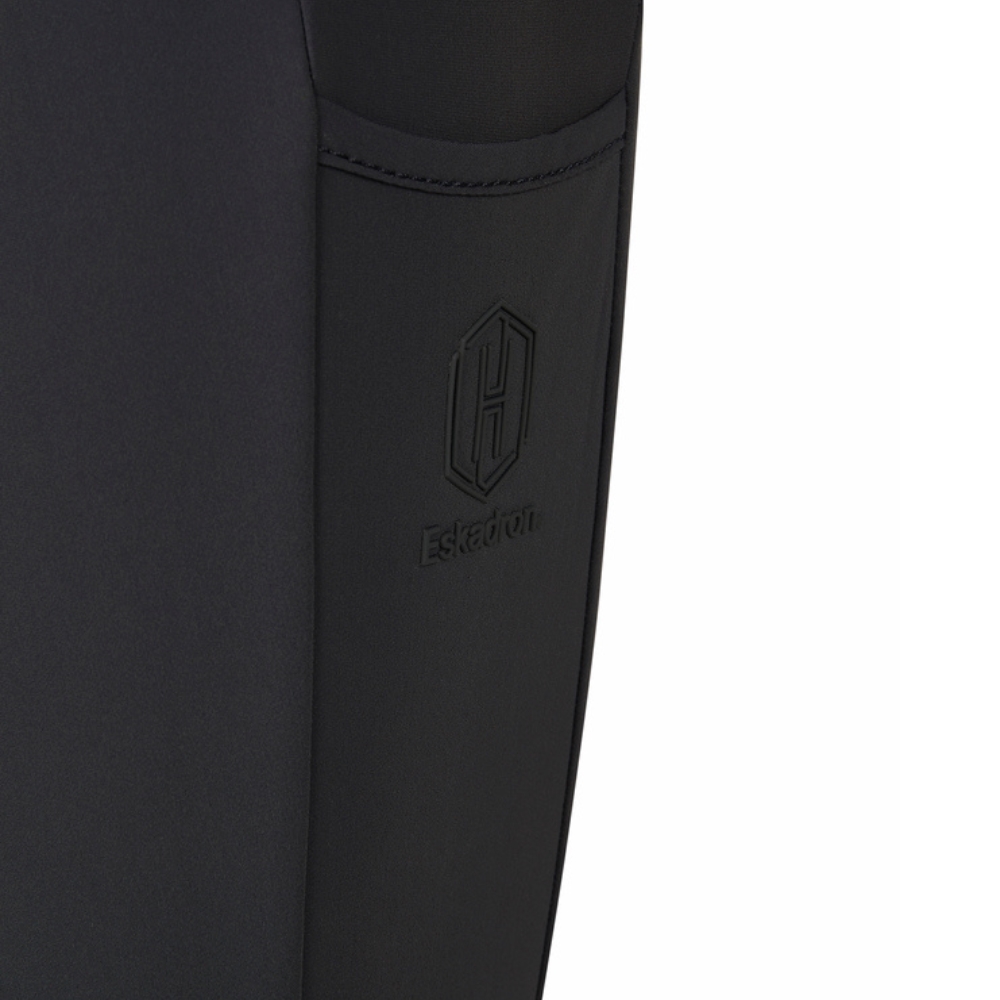Für einen stilvollen und modernen Look sind die Reitleggings mit falschen Reißverschlussnähten, einem formgebenden breiten Bund mit Gürtelschlaufen sowie einer schönen geschwungenen Naht hinten mit Eskadron-Print gestaltet. Die praktischen Handytaschen auf beiden Seiten machen es einfach, das Telefon im Stall mitzunehmen.