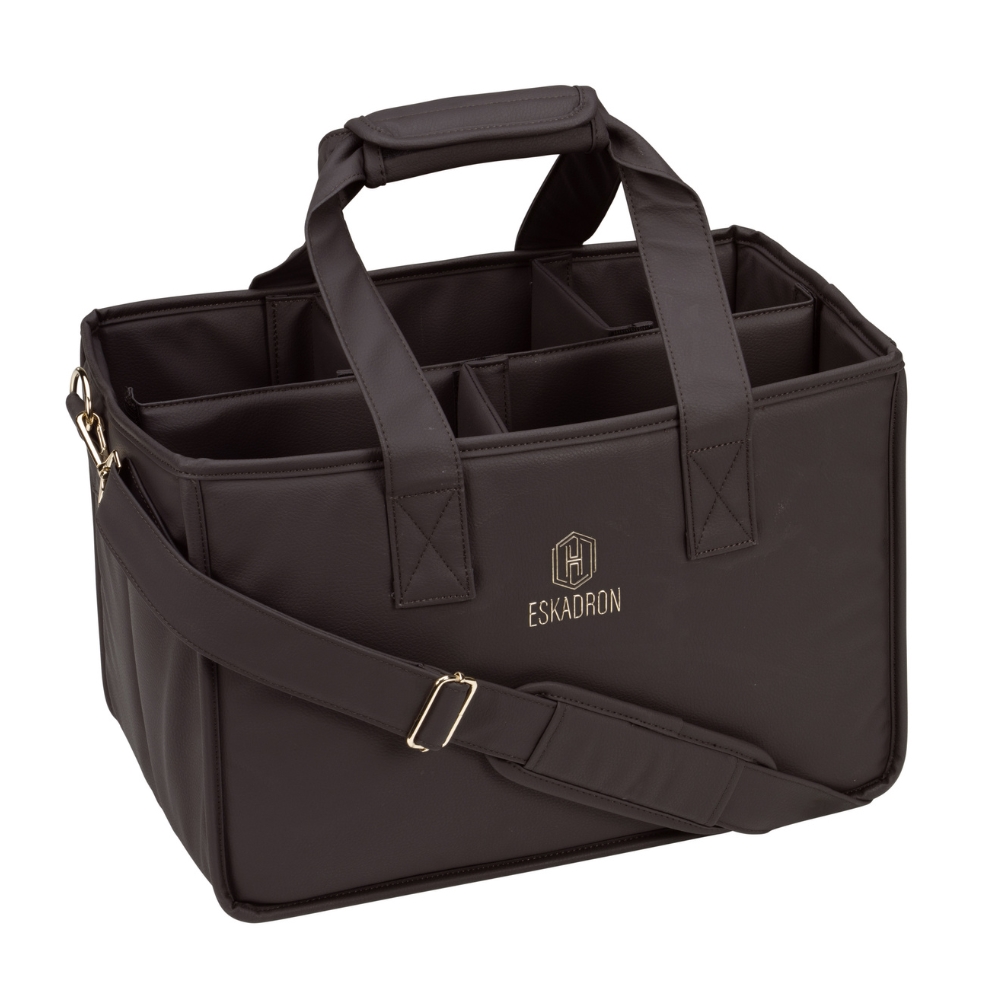 Die Tasche ist ideal zur Aufbewahrung von Pflegeprodukten, Bürsten und Zubehör, sowohl im Stall als auch auf Turnieren. Innen hat sie mehrere Fächer und Taschen, die es einfach machen, Ihre gesamte Ausrüstung zu organisieren. Die breite Öffnung ermöglicht einen einfachen Zugang, und der abnehmbare, verstellbare Schultergurt sowie die zwei Tragegriffe machen sie praktisch zu transportieren.