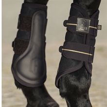Der Rand ist aus weichem Softshell gefertigt, was einen angenehmen und schonenden Abschluss am Pferdebein bietet, während die integrierte PU-Stoßschutzzone mit eleganter Logo-Prägung für zusätzliche Haltbarkeit und Sicherheit sorgt.