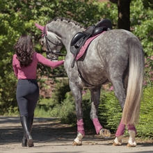 Der Rand ist aus weichem Softshell gefertigt, was einen angenehmen und schonenden Abschluss am Pferdebein bietet, während die integrierte PU-Stoßschutzzone mit eleganter Logo-Prägung für zusätzliche Haltbarkeit und Sicherheit sorgt.