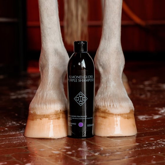 Grooming Deluxe Almond Gloss Purple Shampoo sorgt für ein sauberes, strahlendes und gepflegtes Fell – perfekt sowohl für die tägliche Pflege als auch, wenn das Pferd turnierbereit sein soll.
