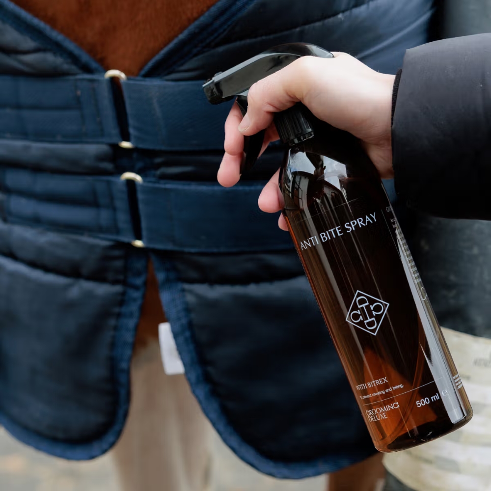 Anti Bite Stop Spray ist eine effektive Lösung, um zu verhindern, dass Pferde an Pferdedecken, Bandagen, Stalltüren und anderer Ausrüstung kauen oder beißen. Das Spray enthält Bitrex – den bittersten Stoff der Welt – der stark abschreckend wirkt, dabei aber sicher in der Anwendung rund um Pferde ist.