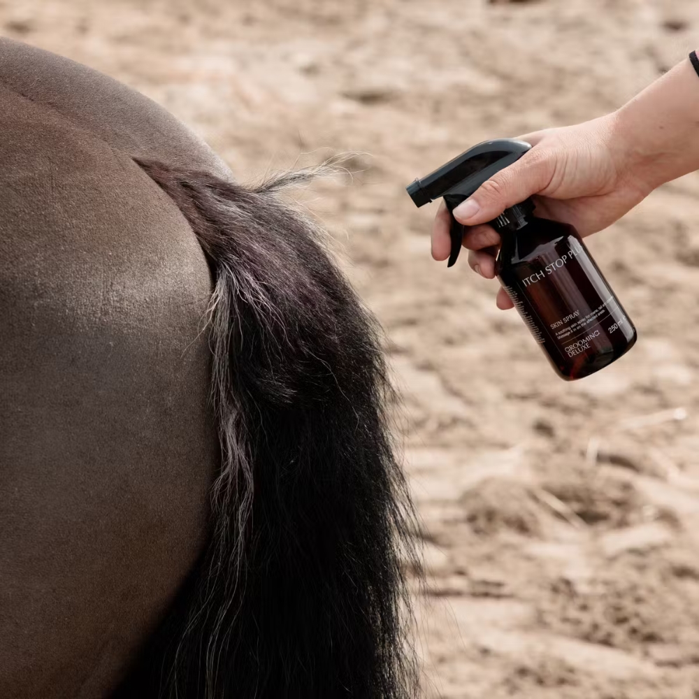 Itch Stop Plus Spray ist ein praktisches Pflegeprodukt, das hilft, die Haut des Pferdes gesund und angenehm zu halten – ein unverzichtbares Produkt in jeder Erste-Hilfe-Box für Pferde.