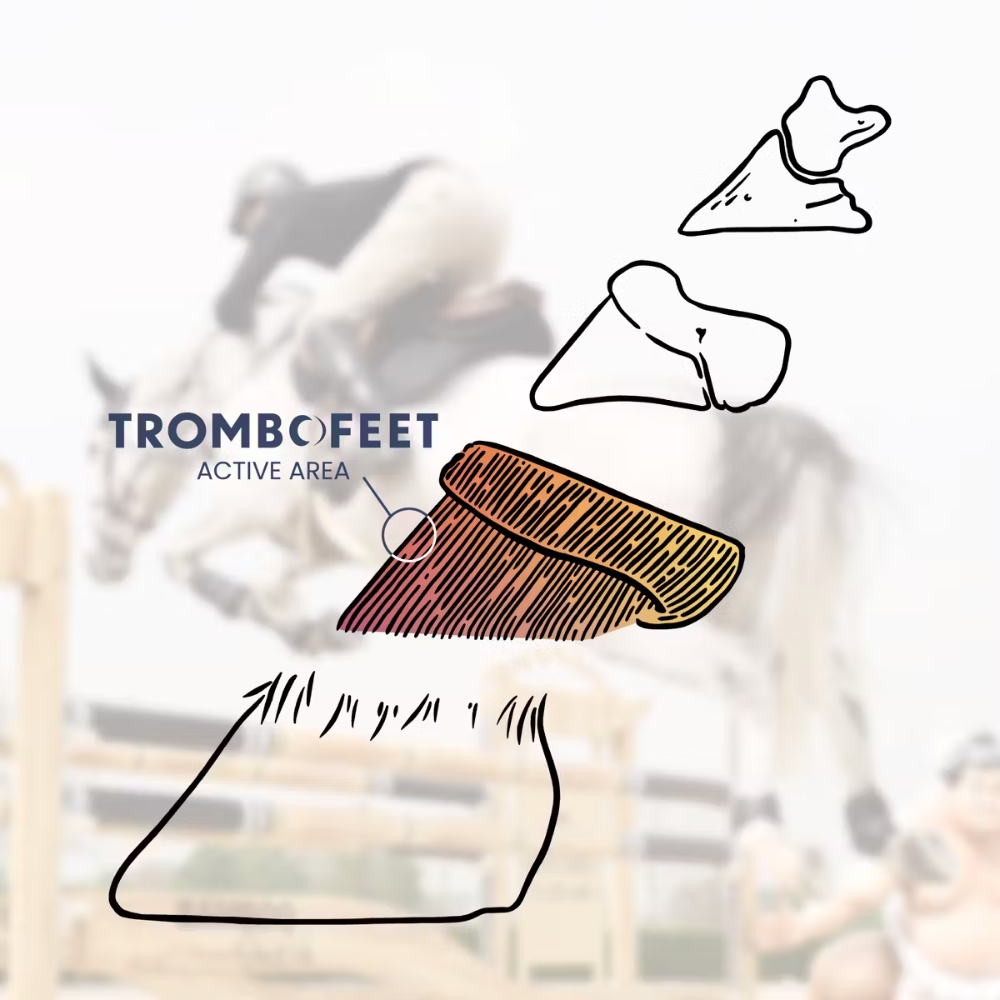 Trombofeet ist eine praktische Ergänzung für Sportpferde, die zusätzliche Unterstützung für Hufkomfort und Durchblutung während Training, Transport und Wettkämpfen benötigen.
