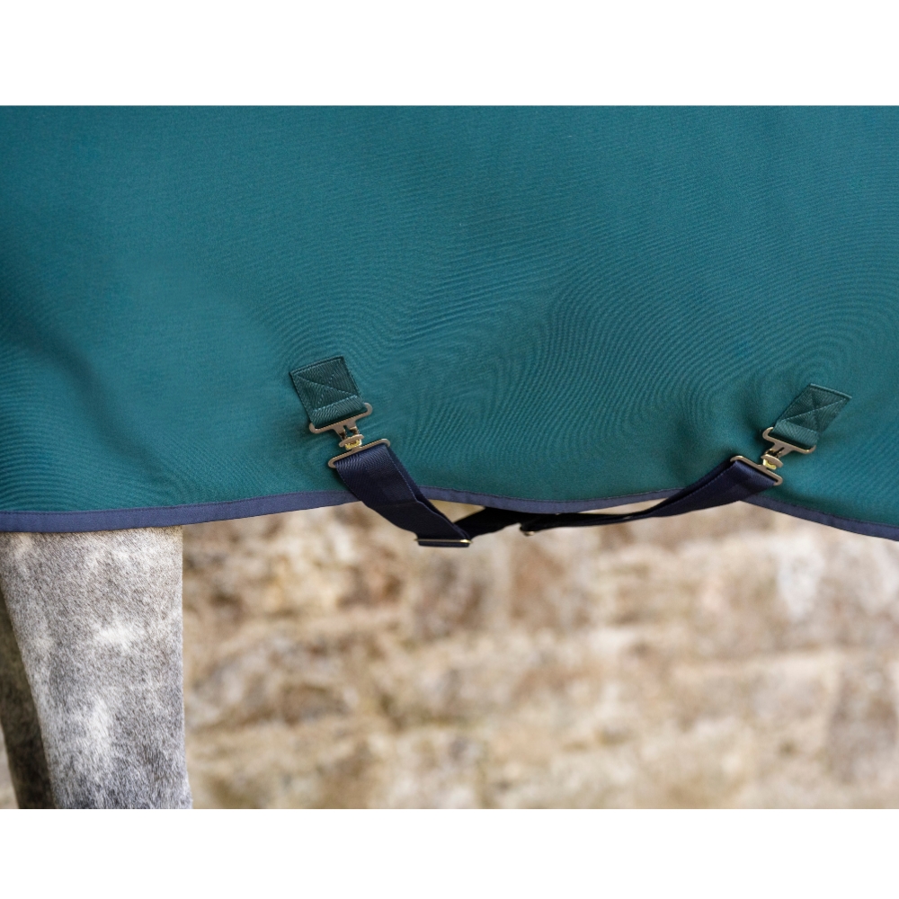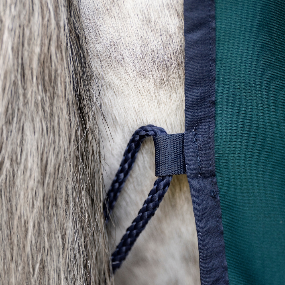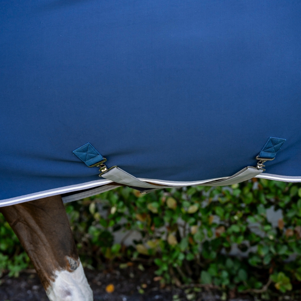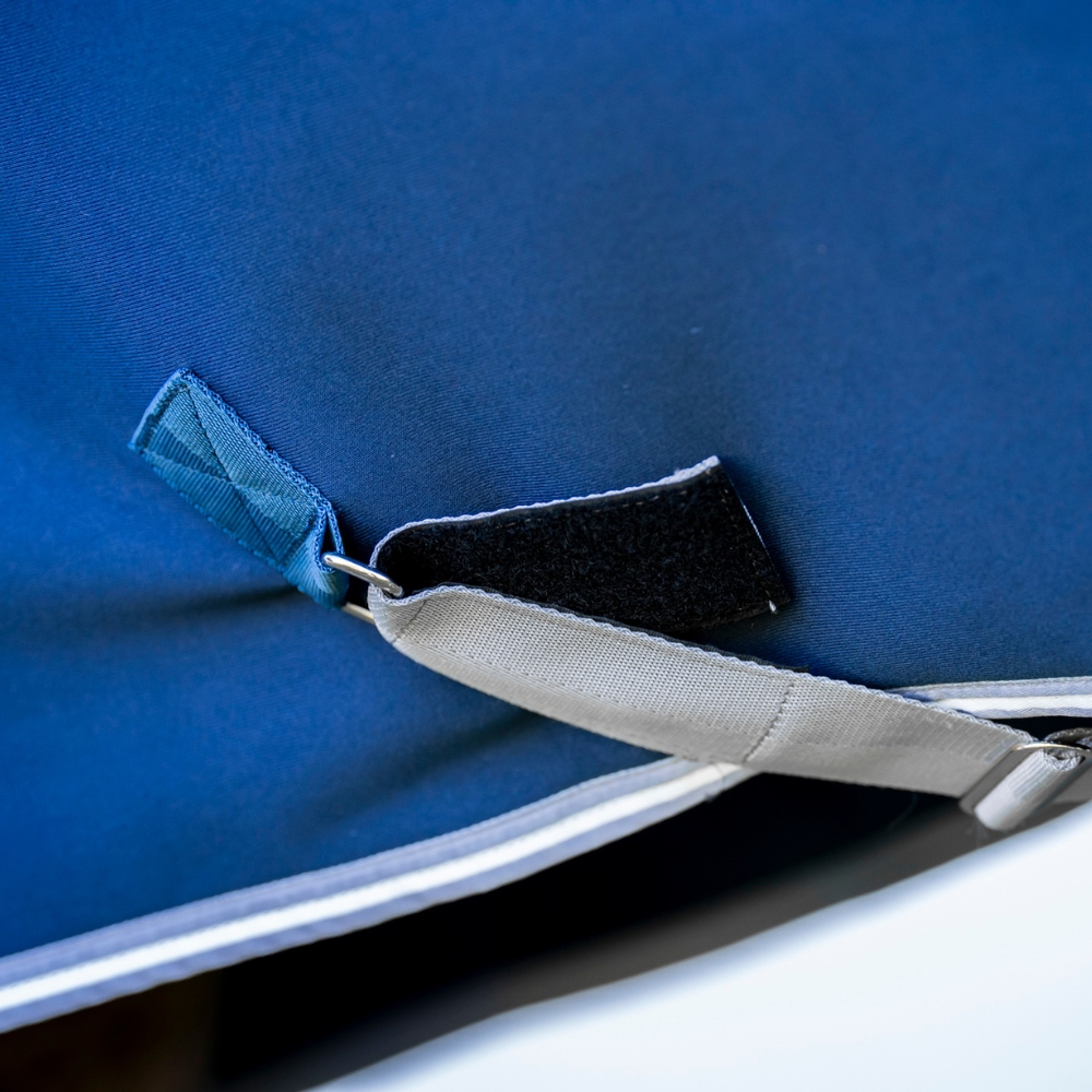 Die Decke ist mit einem sicheren Frontverschluss, abnehmbaren Gurten und einem Schweifriemen ausgestattet, die Flexibilität bieten und die Anpassung der Decke nach Bedarf erleichtern.