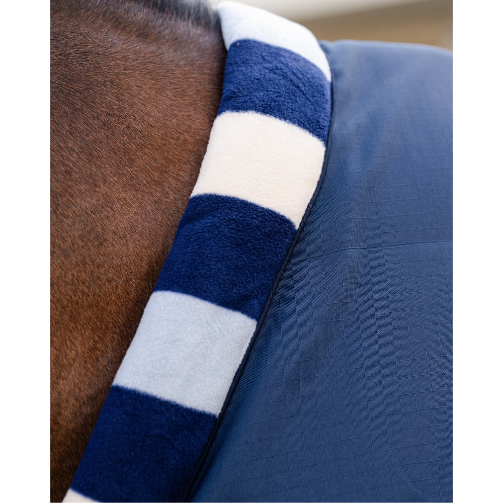 Der weiche Fleecekragen mit klassischen Newmarket-Streifen schützt vor Zugluft um den Hals und verleiht gleichzeitig einen exklusiven Look. Horsewares V-Verschluss sorgt für optimale Schulterfreiheit, sodass sich das Pferd natürlich und mühelos bewegen kann.