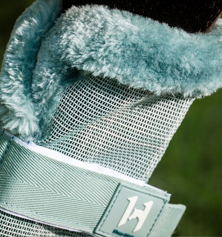 Fliegengamaschen sind aus Polyester-Mesh mit PVC-Beschichtung gewebt, sodass sie Luftzirkulation ermöglichen und gleichzeitig robust genug für den langfristigen Einsatz sind. Weiche Fleecekanten beugen Scheuerstellen vor und erschweren es Fliegen, unter die Gamaschen zu gelangen.