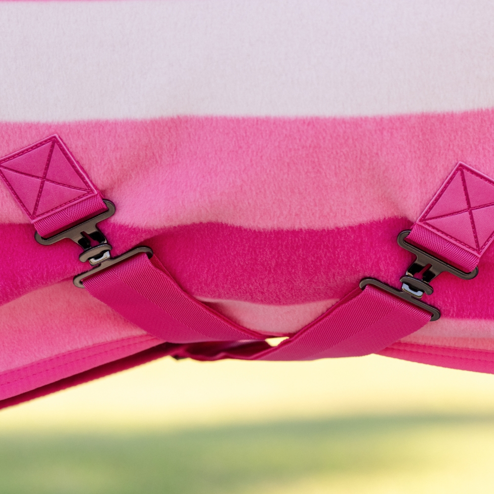 Das atmungsaktive und feuchtigkeitstransportierende Fleece sorgt für eine gleichmäßige und schonende Abkühlung nach dem Training oder Transport, ideal als Cooler, Stalldecke oder Transportdecke.