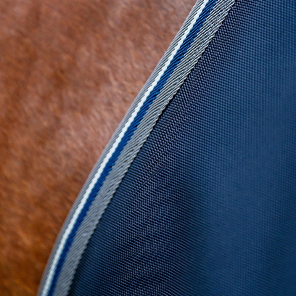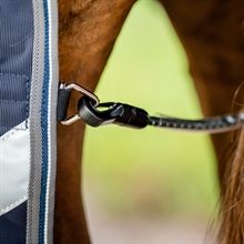 Die Decke hat eine Füllung von 50 Gramm, was sie ideal als Regendecke und Übergangsdecke macht. Die Füllung hilft, Kondensation an wärmeren Tagen fernzuhalten, während sie gleichzeitig zusätzliche Wärme bietet, wenn Regen und Wind die Kälte gegen den Pferdekörper drücken.