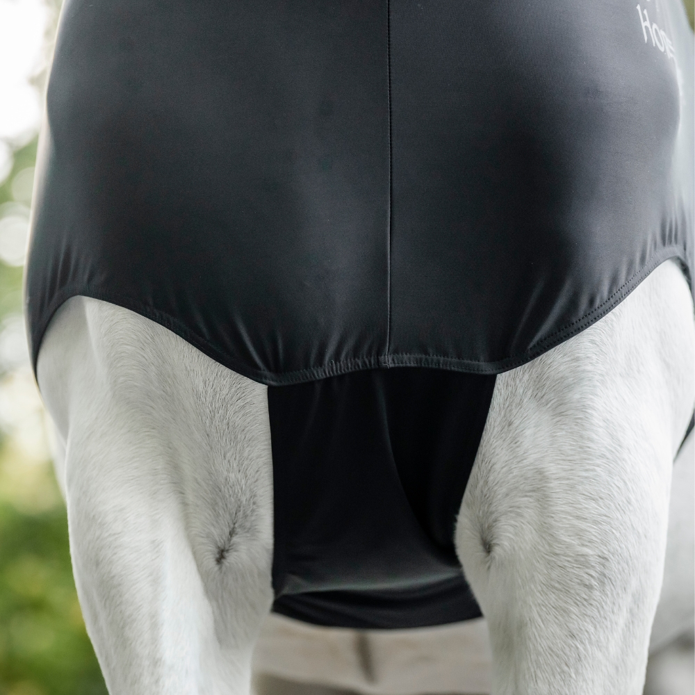 Dieses funktionelle und bequeme Unterhemd aus weichem Lycra-Stretch ist so konzipiert, dass es Ihrem Pferd maximalen Komfort und Schutz unter der Pferdedecken bietet. Das glatte Material verhindert, dass Haare und Staub haften bleiben, und schützt gleichzeitig das Fell des Pferdes vor Abnutzung und scharfen Kanten.
