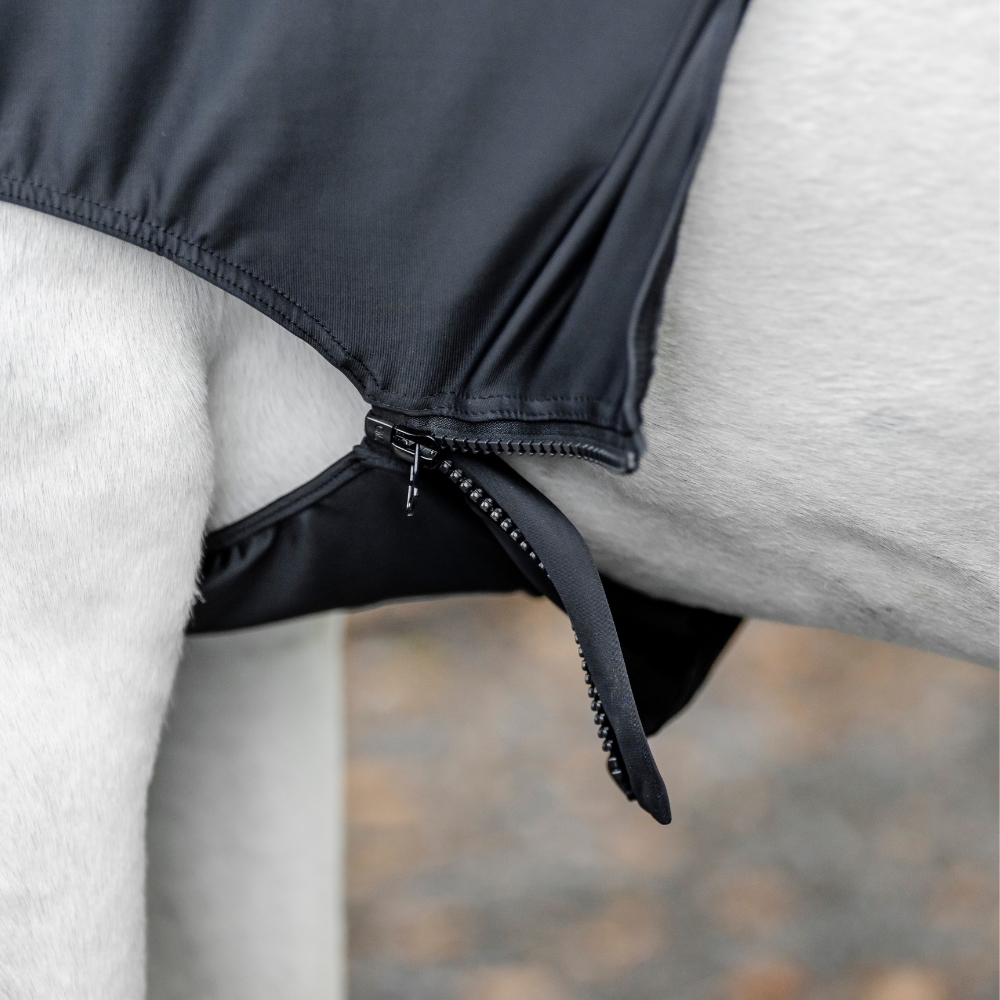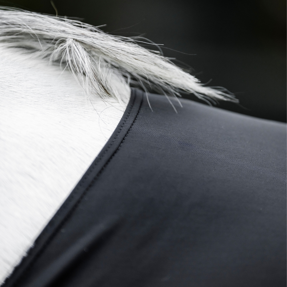 Mit Vorderbeinausschnitten wird eine eng anliegende und flexible Passform erreicht, die dem Pferd volle Bewegungsfreiheit ohne Einschränkungen bietet. Perfekt als zusätzliche Schicht gegen Abnutzung, insbesondere an Schultern und Mähne.