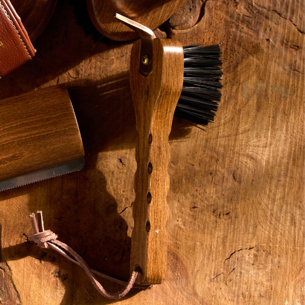 Der Hufkratzer ist mit einem robusten Hufkratzer aus Edelstahl sowie festen Borsten auf der Rückseite ausgestattet, die Schmutz, Matsch und kleine Steine effektiv aus den Hufen des Pferdes entfernen. Die stilvolle Lederschlaufe macht es einfach, das Werkzeug im Stall aufzuhängen.