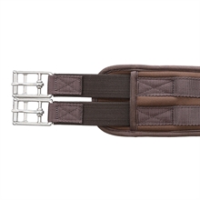 Auf der linken Seite ist der Gurt mit federbelasteten Schnallen ausgestattet, die sich leicht in die Perforationen des Gurtes einklicken lassen. Dies macht das Satteln schnell, einfach und benutzerfreundlicher. Elastik auf beiden Seiten gibt den Bewegungen des Pferdes nach und trägt zu einer besseren Passform sowie erhöhtem Komfort beim Reiten bei.