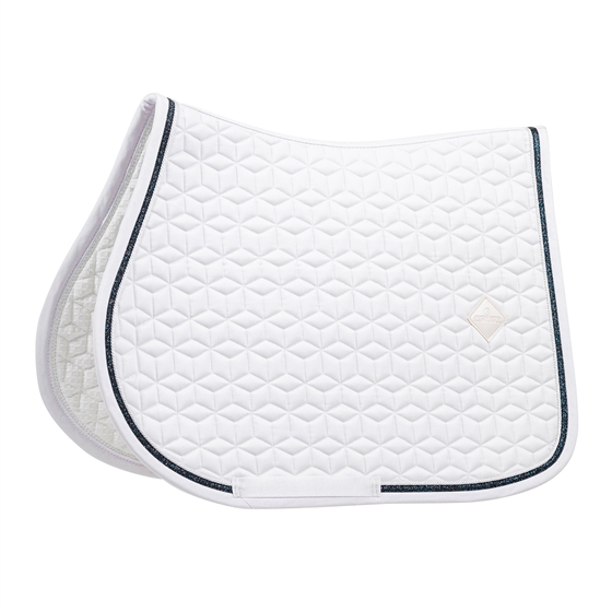 Elegante Sattelunterlage mit einzigartiger Sternsteppung und dekorativen Glitter- und Seildetails, die Stil und Funktionalität vereinen. Die Unterlage schützt das Pferd vor Reibung durch den Sattel und sorgt für optimalen Komfort beim Reiten. Die einfache Designlösung mit einem Nylonriemen für den Gurt macht das An- und Ausziehen einfach.