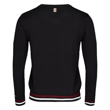 Klassischer Strickpullover mit V-Ausschnitt. 2 x 2 Ripp am Halsausschnitt, an den Bündchen und am Saum.