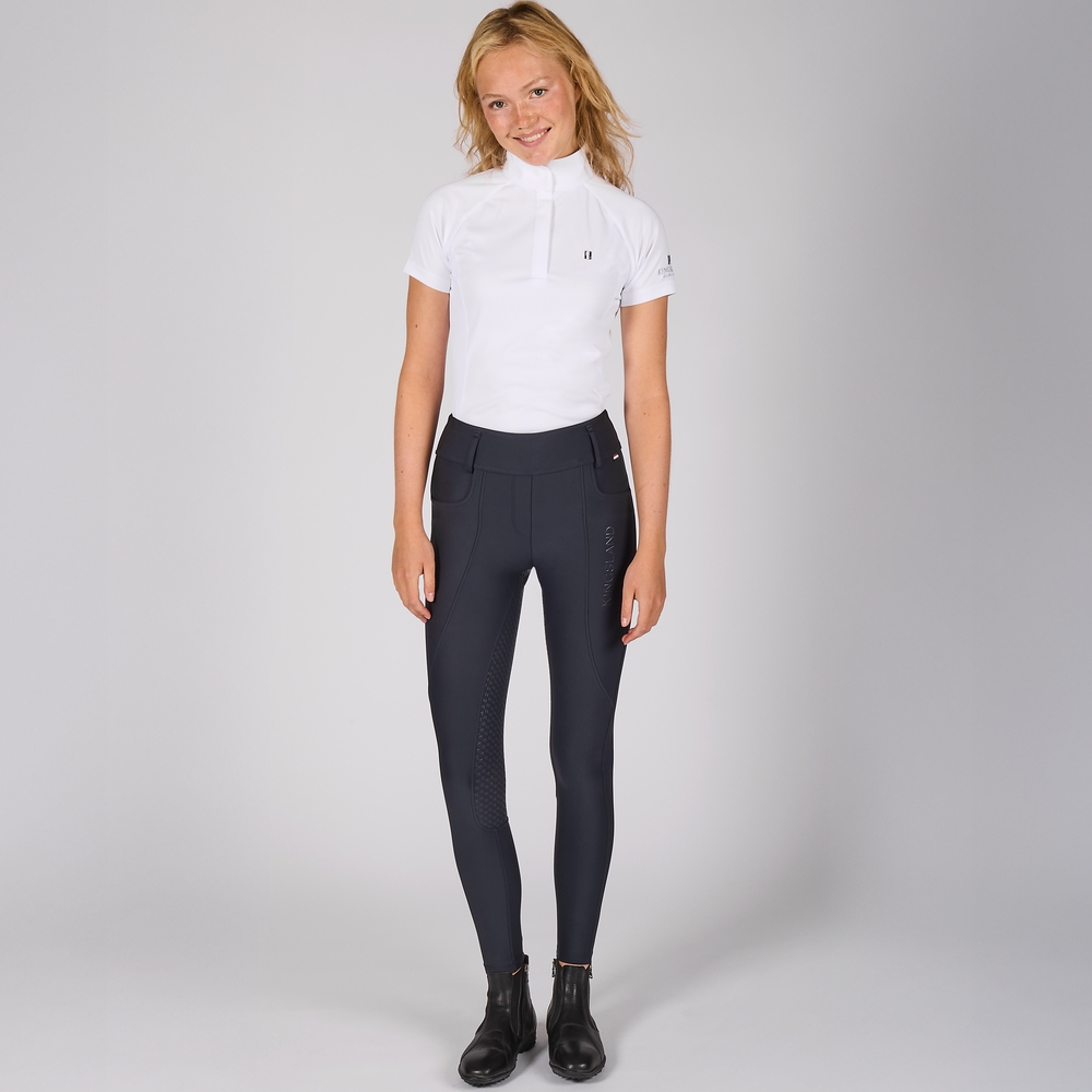 Die A-förmige Passform sorgt für optimale Bewegungsfreiheit und Komfort, während der volle Silikongrip Stabilität im Sattel bietet, ohne die Bewegung einzuschränken. Die Leggings behalten perfekt ihre Form und fühlen sich den ganzen Tag über angenehm an – sowohl im Sattel als auch im Stall.