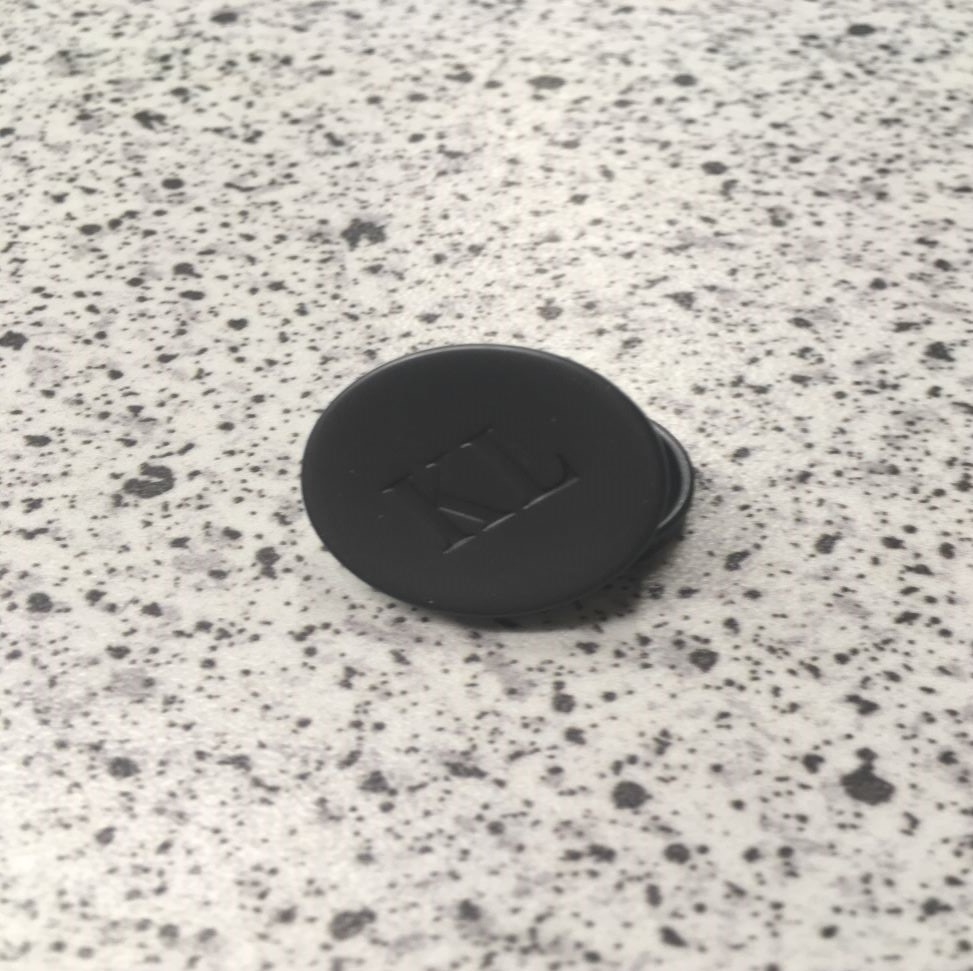 Aus mattem Material, mit großem äußeren Knopf und kleinem inneren Knopf.