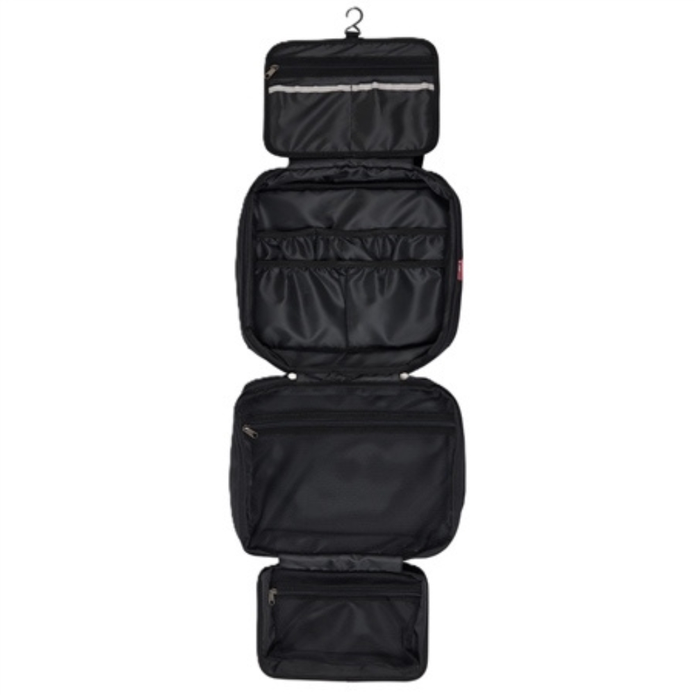 Dieser clevere Organiser wird geöffnet und entfaltet, sodass Sie einen klaren Überblick über all Ihre Kleinigkeiten erhalten. Innen finden Sie mehrere Taschen und Fächer, die es einfach machen, alles von Pflegeprodukten und Bürsten bis hin zu Striegeln, Bändern und Zubehör zu organisieren.