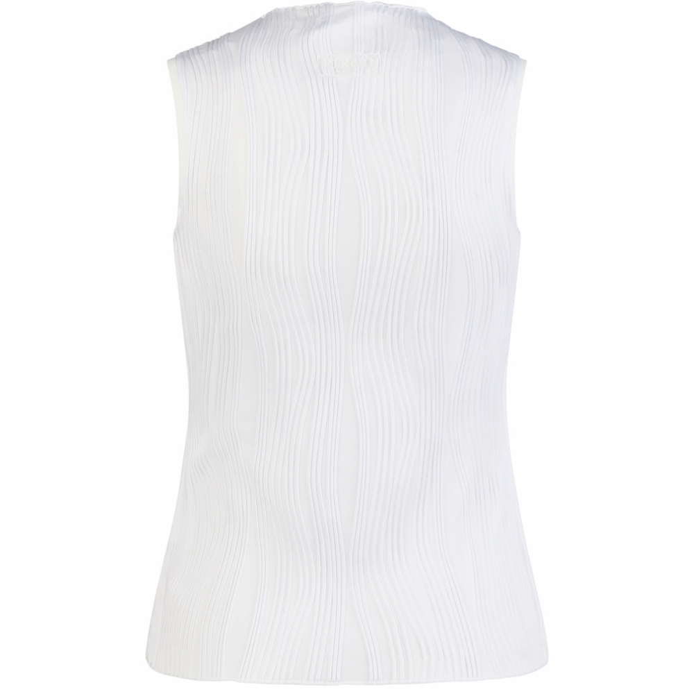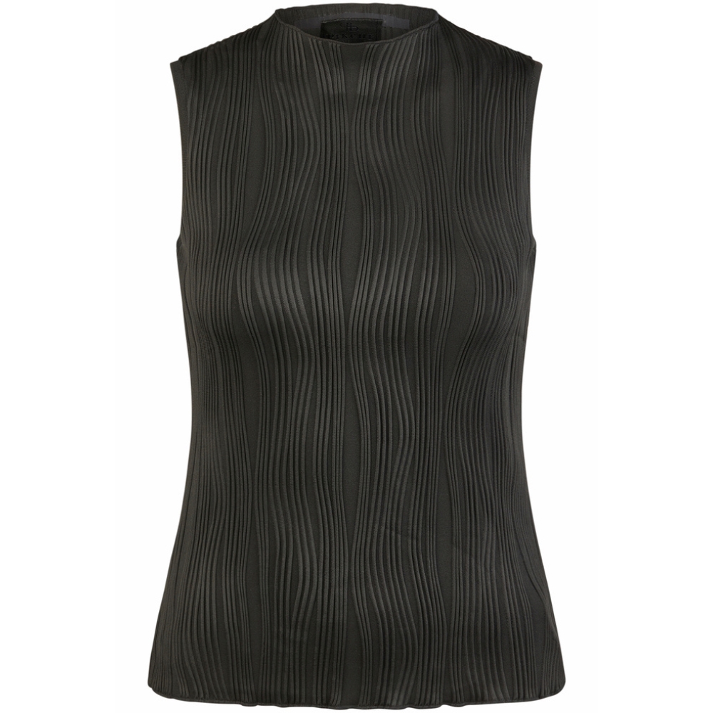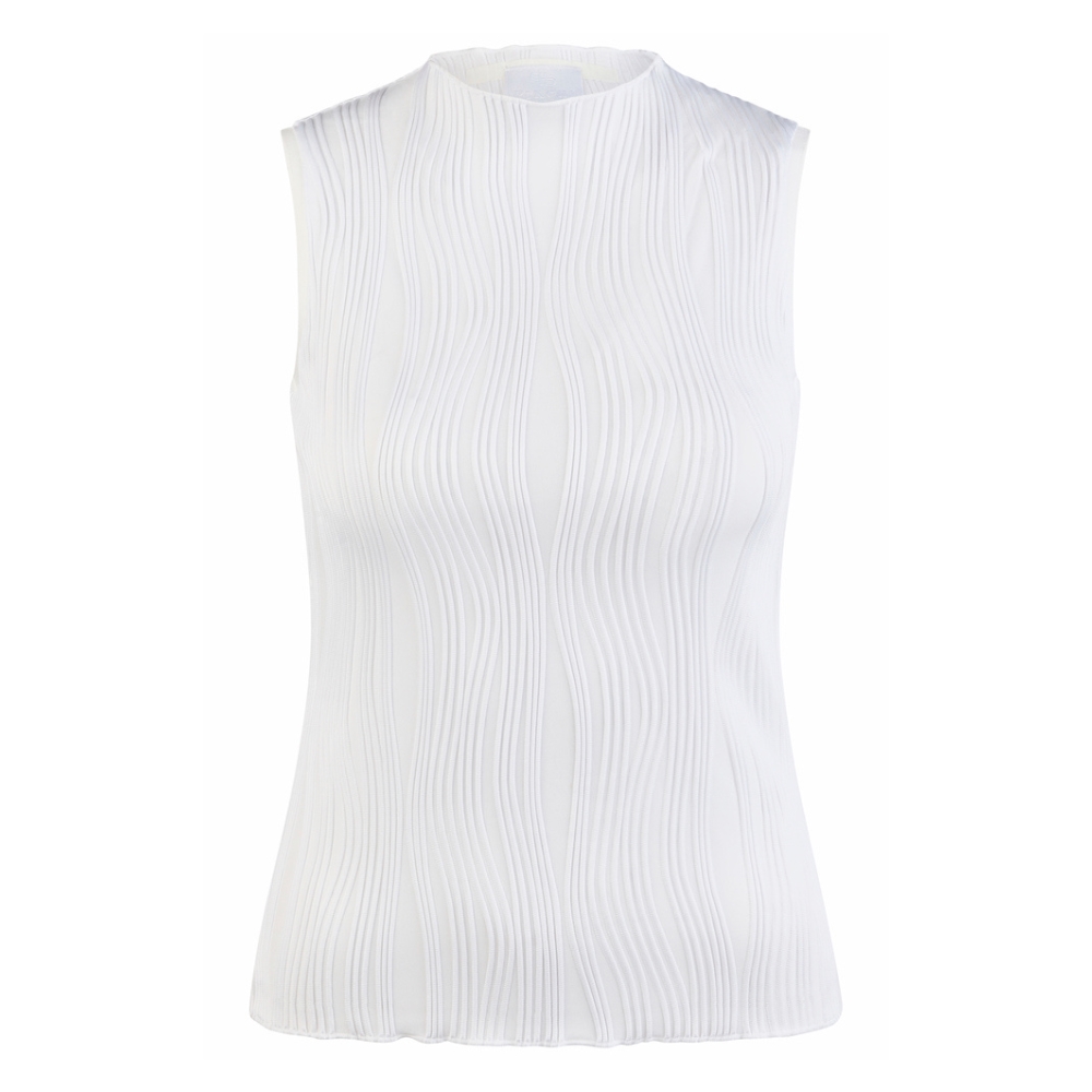 Das Top hat einen kleinen, stilvollen Stehkragen, der einen anspruchsvollen Look verleiht. Die spezielle gekräuselte (Crinkle) Materialstruktur verleiht einen exklusiven und modernen Touch sowie ein leichtes und angenehmes Gefühl auf der Haut.