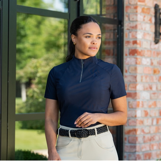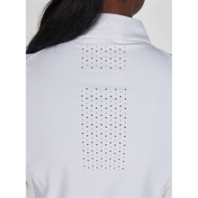 Das Shirt ist aus einem glatten und elastischen Material gefertigt, das optimale Bewegungsfreiheit und hohen Komfort im Sattel gewährleistet. Die leichte und flexible Qualität folgt den Bewegungen des Körpers und bietet eine eng anliegende, athletische Passform.