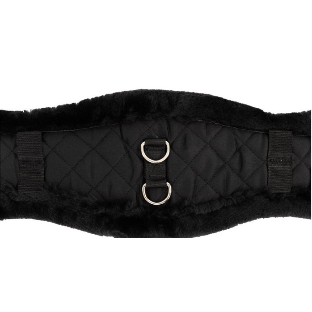 Leckerer und komfortabler Dressurgurt aus gestepptem Baumwollstoff mit Futter aus synthetischem Lammfell (100% Polyester) – ein Material, das sich fast wie echtes Lammfell anfühlt.