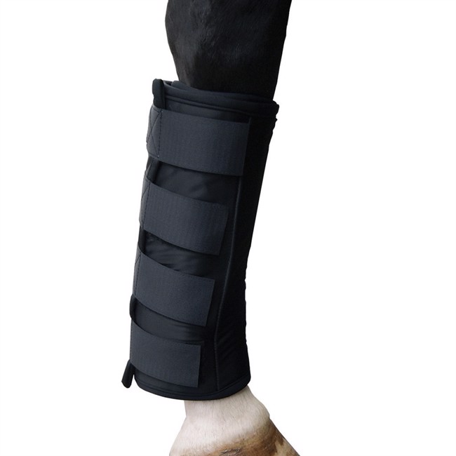Stallgamaschen mit Elementen zum Kühlen oder Wärmen. Einzelverkauf, aber enthält 2 Elemente, die eingefroren oder in der Mikrowelle erhitzt werden können, und die Gamasche lässt sich einfach mit Klettverschluss schließen.