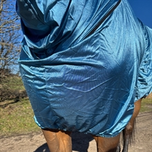 Die Decke hat eine gute Passform, die volle Bewegungsfreiheit bietet, sowie eine praktische Bauchklappe, die zusätzlichen Schutz vor Insekten bietet. Die helle Farbe hilft, die Sonnenstrahlen zu reflektieren und hält das Pferd kühler. Geeignet für viele Pferdetypen – auch für Isländer.