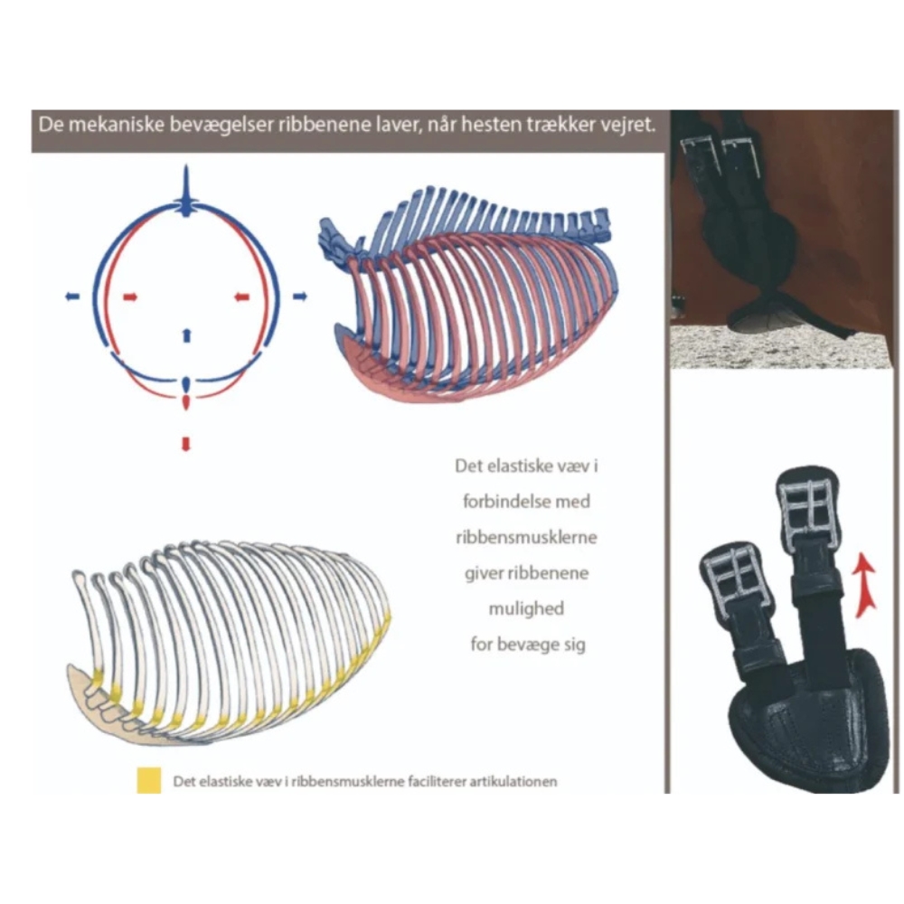 Der Gurt bietet unabhängige Unterstützung der Rippenmuskulatur, während er gleichzeitig viel Platz für den Ellbogen bietet, wenn das Pferd in Bewegung ist. Dies macht ihn besonders geeignet für Sportpferde, bei denen Bewegungsfreiheit und Komfort entscheidend sind.