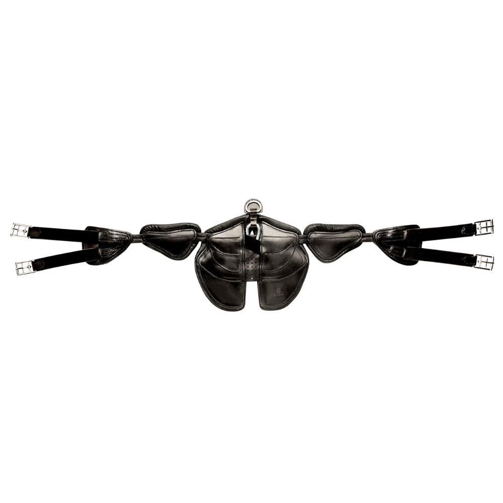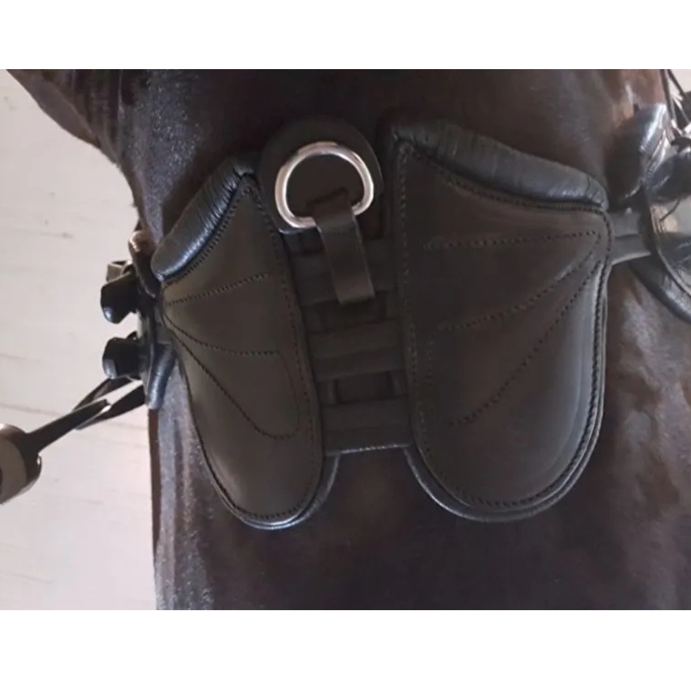 Der Springsattelgurt ist mit einer kleineren Platte als herkömmliche Plattengurte ausgestattet, sodass er nur den notwendigen Bereich abdeckt. Dies reduziert Reibung und Verschleiß zwischen den Vorderbeinen und erhöht den Komfort des Pferdes erheblich.