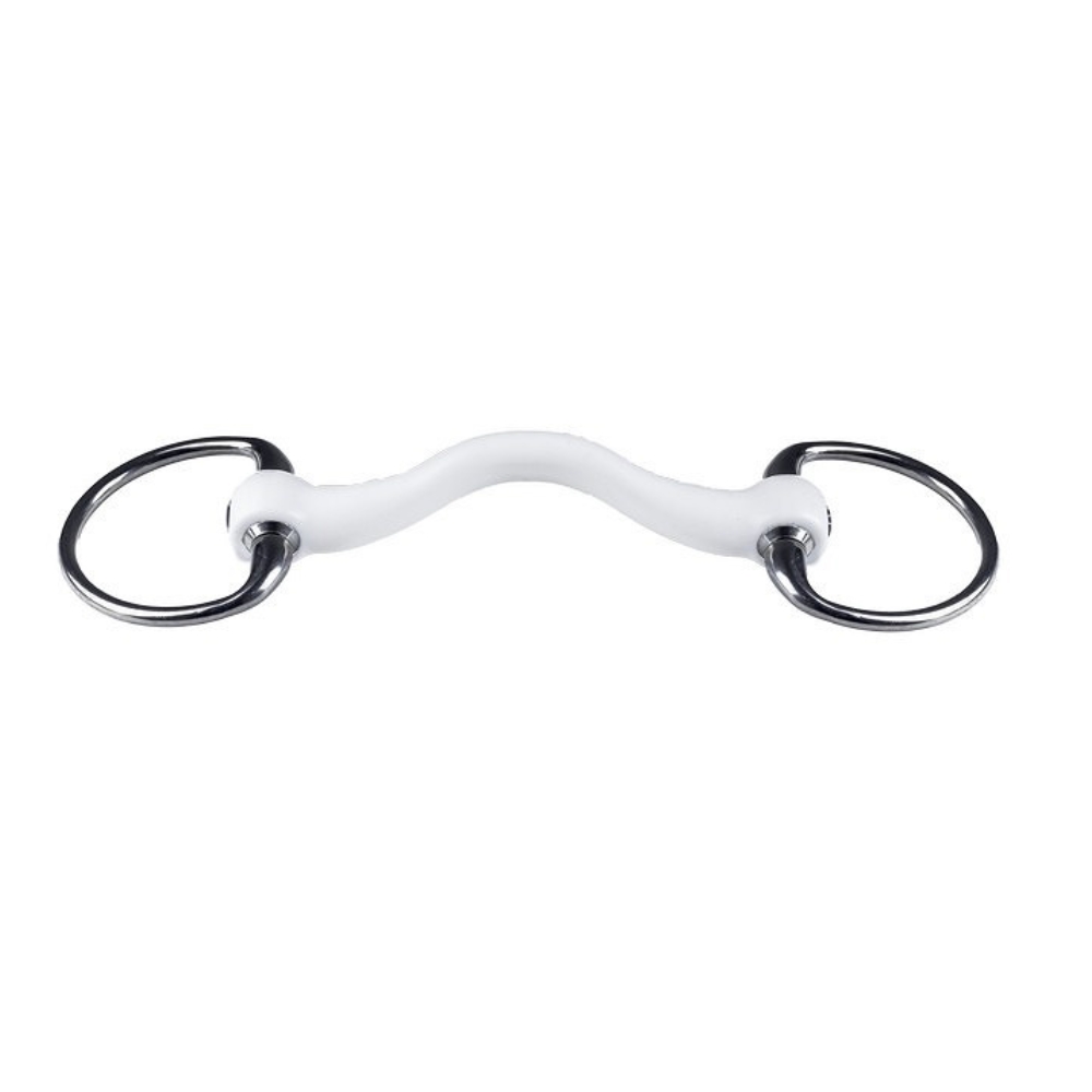Die festen Ringe sorgen dafür, dass das Gebiss ruhig und stabil im Maul liegt, und helfen gleichzeitig bei der Seitwärtsführung, was es dem Pferd erleichtert, die Hilfen zu verstehen.